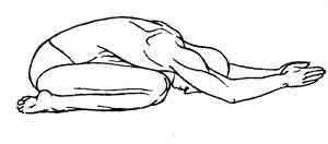 Выждав несколько секунд в этом положении, отпустить бандхи, расслабиться, разомкнуть ладони, положив их на пол, и с медленным вдохом подняться в положение рис.2-5.1. Повторить пять-шесть раз, после чего, сидя в Ваджрасане, опустить руки ладонями на колени, вытянуть позвоночник и дождаться прохождения пранической волны по телу.
