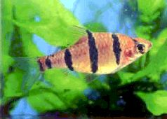 Линейчатый (полосатый) барбус (Barbus eugrammus Silas,1956) встречается примерно в том же природном ареале, что и предыдущий вид. В нашей стране и за рубежом эти рыбы были известны под названиями В. lineatus Duncker, 1904 и В. fasciatus Bleeker, 1853.Достигая в природе длины 12 см, в аквариуме эти рыбы обычно мельче: 7-9см. Они миролюбивы и хорошо уживаются в общем аквариуме с другими спокойными видами.