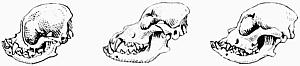 «Как подтверждают археологические раскопки, еще пять тысяч лет назад, в эпоху неолита, люди и собаки совместно обитали в Евразии, Африке и Северной Америке, причем собаки выполняли функции охотников и сторожей, пасли и охраняли стада овец. Они, по-видимому, очищали от отбросов деревни, а порой и сами шли в пищу. Изолированные поселения служили прекрасными лабораториями, где начались самые длительные в истории человечества эксперименты по выведению новых пород. Работая с собаками, убыстряя естественный отбор путем выборочного скрещивания с использованием диких волков или шакалов, «генные инженеры» древности довольно быстро вывели новые породы собак. Так, северные разновидности, маламуты и лайки, сохранили многие из своих примитивных волчьих инстинктов. Египетская гончая, предшественница серой гончей и салуки, возможно, унаследовала стройность и узкую голову от золотистого шакала Африки и Азии.
