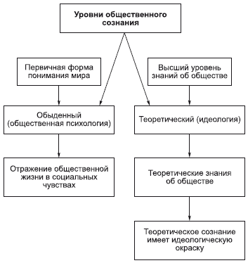 С гносеологической точки зрения в общественном сознании выделяют два уровня: обыденное (повседневное) и теоретическое. Здесь речь идет о глубине отражения в общественном сознании общественной жизни. Отметим, что «обыденный» вовсе не означает «неполноценный», «обывательский». Обыденное сознание – это как бы первичная форма понимания мира.