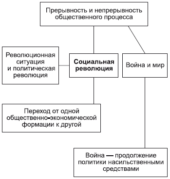 Общественный процесс включает в себя как непрерывность, так и прерывность, эволюционные и революционные изменения, состояния войны и мира.