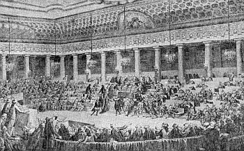 Талейран без колебаний покинул погибающий корабль, — точнее, те части погибающего корабля, где так беспечально и роскошно протекала до сих пор его жизнь, — и поспешил пока что перебраться в более безопасные помещения: в Версале он перешел из залы духовенства в залу третьего сословия.