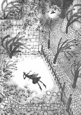 И вдруг — Майкл и Джейн не поверили своим глазам, — едва женщина вошла в садик, она поднялась в воздух и полетела прямо к дому! Да, было похоже на то, что ветер сперва донёс её до калитки, подождал, пока она откроет, а потом принёс её прямо к парадной двери.