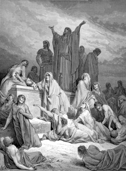 Потом подул сильный ветер, который разнес гниение по всей стране. Зловоние и смрад вскоре достигли самых отдаленных местностей, распространились по их городам и шатрам. Если этот запах вдыхали человек или животное, через некоторое время они обязательно умирали.