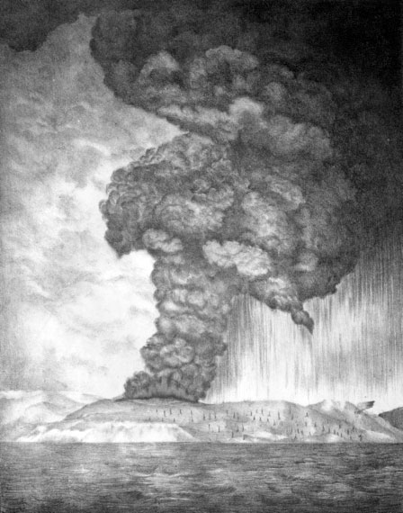 В Джакарте, главном городе острова Ява, поднявшийся пепел затмил солнце до такой степени, что наступила почти полная темнота. Тончайшая пыль достигла стратосферы, в которой она распространилась по всей Земле. Это, в свою очередь, вызвало во многих странах необычайно красные зори и яркие закаты солнца в сумерки.