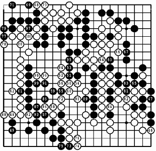 На этой стадии в других, в не столь ответственных играх Отакэ Седьмой дан способен за минуту сделать сотню ходов, наседая на противника, и в этой партии он тоже, несмотря на запас времени в 6-7 часов, казалось, стремился использовать мгновенную реакцию возбужденной нервной системы, старался не упустить волну. Словно подстегивая сам себя, он часто запускал руку в чашу с камнями и лишь потом задумывался. Даже Мэйдзин один раз взял камень и вдруг заколебался.
