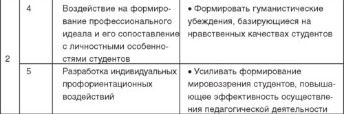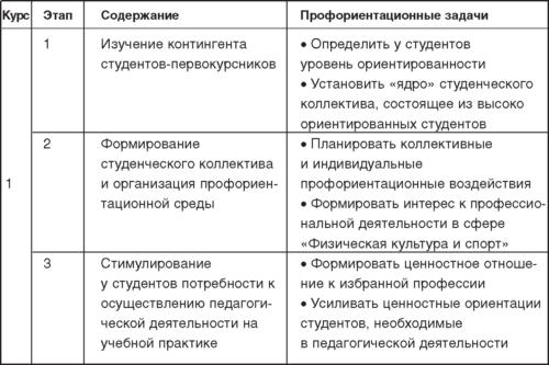 Планирование профориентационных воздействий включает ряд этапов (табл. 7). Формирование этого аспекта в значительной степени связано с воспитанием личности будущего педагога. В этом случае, этапы профессиональной ориентации приоритетно направлены на воспитание личностных и профессионально важных качеств студентов.