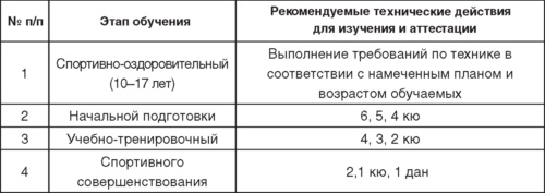 Для дзюдоистов, решающих задачу совершенствования техники, соревнования проводятся в виде аттестации. Их программа регламентируется с учетом рекомендаций по изучению технических действий (табл. 12).