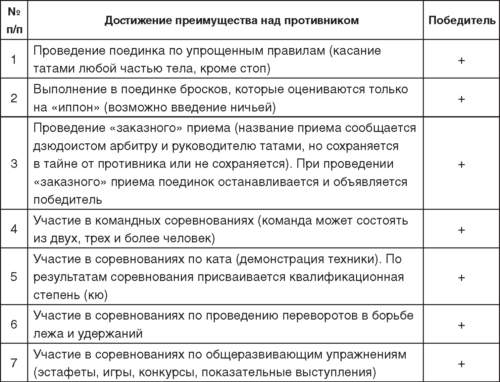 Основное требование к гуманизации соревновательной деятельности — свобода выбора возможностей проявить себя. При этом важно получить преимущество над соперником, которое будет признано как отдельная победа. Успешность соревновательной деятельности юных дзюдоистов следует оценивать по их готовности самостоятельно действовать и принимать решения в изменяющихся условиях. Возможные критерии выявления победителей при проведении соревнований в спортивно-оздоровительных группах представлены в табл. 13.