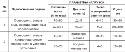 Для развития координации движений у дзюдоистов регламентируются параметры тренировочных нагрузок (табл. 28).