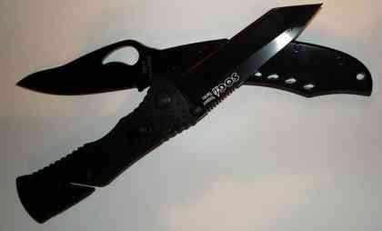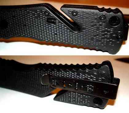 Что же до отсутствие замков, так это тоже не очень плохо. Инструменты в рабочем положении подпружинены довольно сильно и при использовании самопроизвольно не складываются. Нет мелких люфтов, присущих замкам тех же СОГов. А даже если и предположить, что что-нибудь вдруг сложиться, то на пальцы оно все равно никак не попадет, так как упрется в ручку. Вот на фотке это хорошо видно на примере клинка. Но, повторяю, у меня при работе ничего еще не складывалось.