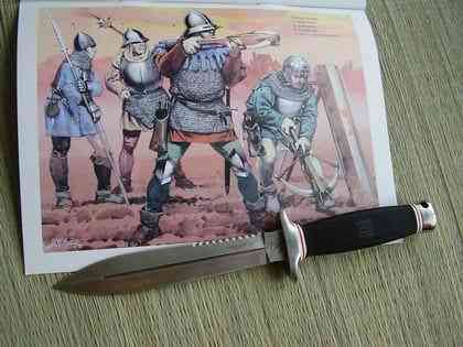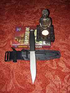 Что сказать… Вроде бы, нож без недостатков. Но в лес я не хожу, противников каждый день не режу, гвозди им не забиваю…. И не любуюсь им, как, например, АФФ или Колдстиловским Пискипером или Пентагоном…. Нет в нем той харизмы, той сумашедшинки, что есть у кинжалов… Так что, ИМХО, про него, к сожалению, можно сказать слова И. Скрылева— "кусок заточенной железяки"…Нет в нет души, нет… Пожалуй, продам я его и приобрету или В— 42 или Бёкер Грабендольх…
