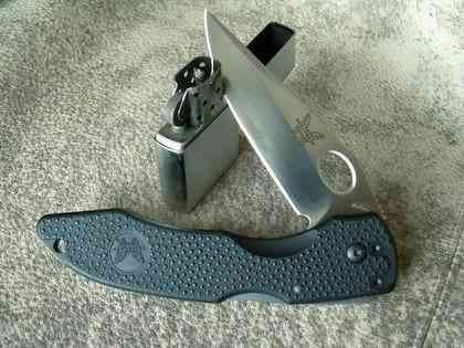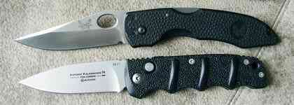 Недостаток Пики стал уже притчей во языцех — конечно же, это большая фаска на овальном отверстии для открывания, из-за которой палец без привычки соскальзывает и при этом довольно тугой замок. Зато, что бы там не говорили насчет "характерного для бэклока люфта" — на моем экземпляре люфта нет совсем тьфу-тьфу-тьфу. Надежность замка не вызывает никаких сомнений. Открывание происходит с четкой фиксацией сочным щелчком. Другой недостаток связан с тонкой рукоятью — носить хорошо, а работать долго невозможно. Кстати, рукоять Пики провоцирует своеобразный хват, располагая руку довольно далеко от клинка, как бы "удлиняя" нож. Если посмотреть на табличку, становится очевидным, что при почти одинаковой длине клинка рукоять Пики на 13 миллиметров длиннее, чем у Магнума — так вот, собственно, на эти полтора сантиметра и происходит "удлинение".