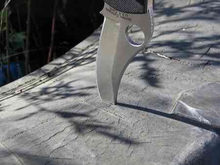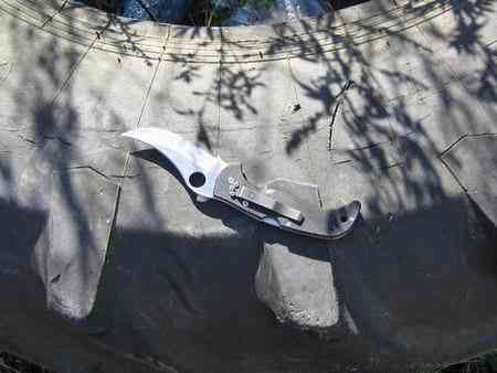 Самооборонные возможности у Эндурки, пожалуй, пошире, чем у Тасман Салта. Несмотря на отсутствие такого потрясающего реза, она универсальнее, за счет возможности нанесения приличного укола. Я сейчас не очень большой любитель околобоевой и спортивной поножовщины, я человек мирный, но посоветовать спаевские керамбиты для самообороны могу только людям, имеющим некоторое представление о предмете. Мнение о том, что ими можно отмахаться, вообще не имея никакой подготовки, я не разделяю. Тасман Салт как нож для селфдефенса ценен прежде всего отличным сочетанием превосходного реза и минимальными размерами и весом, плюс удобством ношения. Например, нескладной Bear Claw от CRKT при меньшей длине лезвия весит 89 гр., да еще ножны 23, итого в два раза больше, носить же его не так удобно. Конечно, Салт не традиционный керамбит, за неимением кольца, но обратным хватом им так же действовать достаточно удобно. Вообщем, так много злого реза при таких скромных размерах и при таком удобстве мне еще не встречалось, разве что, на Эмерсоновском керамбитике, но мое с ним знакомство было очень мимолетным, поэтому воздержусь от поспешных выводов. Но для того, что бы этим резом в экстренной ситуации удачно распорядиться, нужны, повторюсь, некоторые навыки. Ежели навыков нет, а желание иметь самооборонный нож есть — берите Эндуру. Ею можно кого-нибудь насмерть запырять, много ума не надо. Ну и в быту она, даже с серейтором, значительно удобнее и функциональнее.