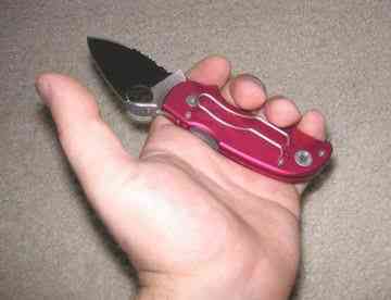 На рычаге замка выточена по дуге выемка. Она оказалась действительно функциональной и удобной. Она препятствует случайному открытию замка когда рука сильно сжимает нож, а также помогает не глядя, на ощупь закрыть нож.