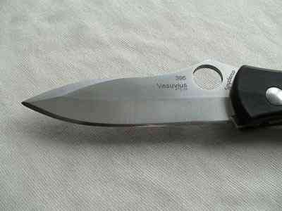 Сейчас Везувиус уже не выпускается, вместо него Spyderco выпустила Centofante-3. На этом ноже клинок еще тоньше, замок сменили на бэклок, сталь на VG-10. Крутил я его в руках неоднократно — производит грустное впечатление на фоне Везувия…Совершенно разная культура производства…