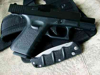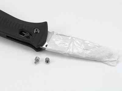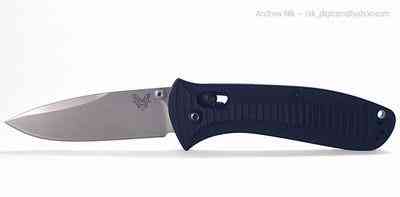 Продавцы предлагали также автоматический вариант этого ножа (Benchmade 5000), но он понравился мне меньше за счет не такого приятного клацанья при закрывании, да и конструкция потенциально более уязвима (дополнительная пружина и предохранитель). Длина клинка 86 мм, вроде бы заметно меньше чем у Lone Wolf T2 (100 мм), но реально, когда берешь и тот и другой в руки, разница непринципиальная. Кстати, при этом длина рукоятей у этих ножей одинакова, а весит Bencnmade 520 заметно больше "одинокого волка" за счет более мощной конструкции и алюминиевых накладок. То что рукоятка из анодированного алюминия, совершенно не напрягает. Я, признаться, узнал об этом только через три дня после покупки, внимательнее прочитав описание в интернете. До этого думал что это G10.