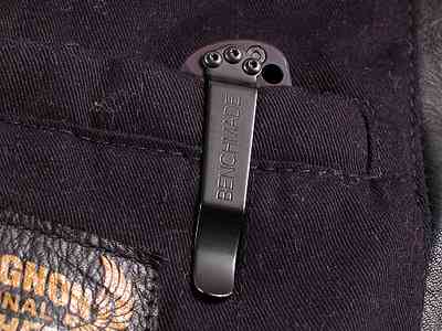 Нож продается в черной коробке (520 Presidio относится к классу Black, ориентированному на охотников и профессионалов). На коробке традиционная для Бенчмейда надпись "Берегите руки. Ножи Бенчмейд упаковываются экстремально острыми". Сам нож лежит внутри в красивом шелковом мешочке. Применения ему я не нашел, ношу нож в кармане на клипсе примерно так (показано во внутреннем кармане кожаной куртки):