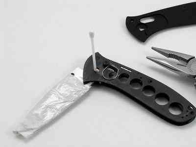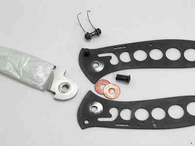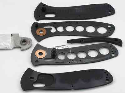 Разборка прошла без проблем. Винты, кроме главного осевого и клипсовых, посажены на какой-то клей. Хорошая фиксация, но не чрезмерная, откручивается без срыва шлицов и т. п. Думаю, что это типа пломб — сразу можно определить, разбирали нож или нет. Ну и фиксация от самопроизвольного откручивания превосходная. Кстати, разобрав нож, лишился гарантии, но не особо переживаю по этому поводу: ломаться там просто нечему.