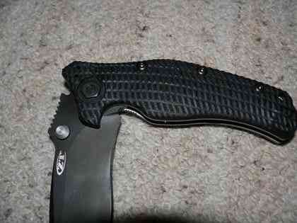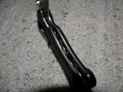 На пластине пружины имеется металлический шарик, который попадает в сквозное (!) отверстие в пятке клинка в сложенном состоянии. Почему под шарик не сделали просто углубление — непонятно.