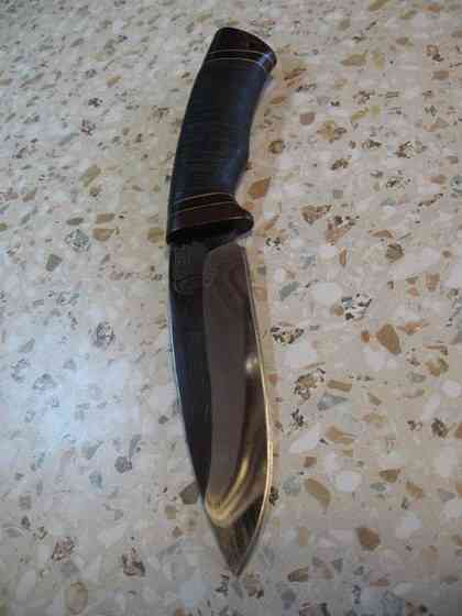 2. Называется НСК Стерх с Гардой. С рукояткой из кавказского ореха со стальными притинами и Х12МФ на клинке.