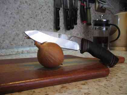 По мясу работа была не работой, а просто праздником! Но вот по луку… Тоже неплохо! Больше колол, чем резал, но не критично.