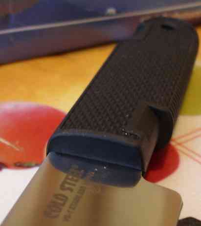 Не понравились насечка с верху клинка под большой палец. При удержании прямым хватом и надавливании пальцем чуть вперед, она не задерживает его, а лишь обдирает края пальцев. Поэтому для предотвращения скольжения пальцев лучше чтобы они находились на обмотке, хотя бы частично.