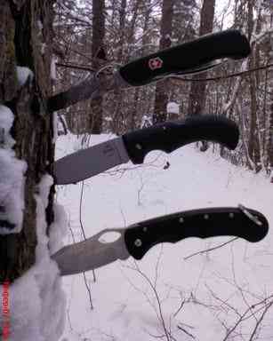 и считаю его отличным для аккуратной взрезки шкурки апельсинов — рез происходит почти по касательной. Прочность острия клинка и большой угол схождения позволяет закручивать и раскручивать винты под крестовую отвертку, поддевать острием все, что считаешь достойным поддевания, а так же даже немножко рубить этим ножом — в основном, уже благодаря массе передней части клинка. Благодаря углу схождения острия — выше 70 градусов, ProLite DropPoint был сертифицирован как ХБ еще до эпохи исторического материализма, то бишь до изменений в ГОСТах летом 2005-го. Но этот же угол делает затруднительным не только протыкание тушки Венца Творения, но и банальное проковыривание дырок в плотном материале и опять же аккуратное вырезание дефектов картошки. Опробовано. И мне захотелось в этот раз проверить менее тупоносый дроппоинт. Кроме вышеприведенного наблюдения по работе с картошкой, оба ножа побывали со мной в выходные в лесу, типа, на праздновании масленицы… Нет, никакого туризма — экстрима… Все было организовано до нас, и в расчете на детишек. Никакого окапывания костра, колки поленьев и рубки корней… Но с щепленьем лучины для самовара оба ножа отлично справились. Особенно приятно, что с помощью обоих ножиков очень легко строгается на завитушки лучинка, так, чтобы палочка становилась "кудрявой". Для розжига самое то. А вот разделение длинных палок на отрезки требуемой длины поперек волокон (для облегчения последующего щепления), как всегда, удобнее проводить пилой викса.
