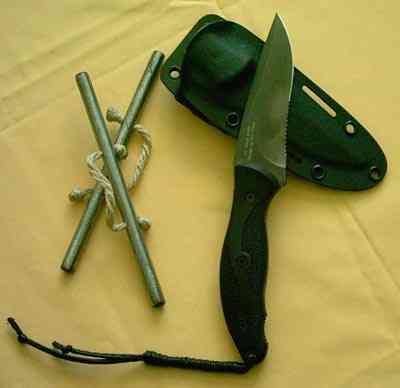 Рукоять ножа: рукоять ножа (textured polyamide handles with lanyard hole) очень надежна и удобна. Полиамидные пластины закреплены на пластине клинка при помощи пластинчатого монтажа 3 винтами Torx. Возможно, полиамид по сравнению с микартой, несколько скользковат, поэтому, чтобы предотвратить скольжение, на полиамидных пластинах в местах наибольшего соприкосновения с поверхностью ладони при сжатии сделана насечка.