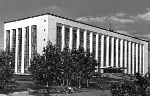 Публичная научно-техническая библиотека Сибирского отделения Академии наук СССР в Новосибирске. 1965. Архитекторы А. А. Воловик, Н. Г. Бурханов, Ф. Н. Пащенко, инженер Н. Б. Лившиц.