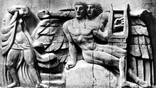 Э. А. Бурдель. «Размышление Аполлона». Фрагмент рельефного фриза для Театра Елисейских полей в Париже. Гипс. 1910—13. Музей Бурделя. Париж.