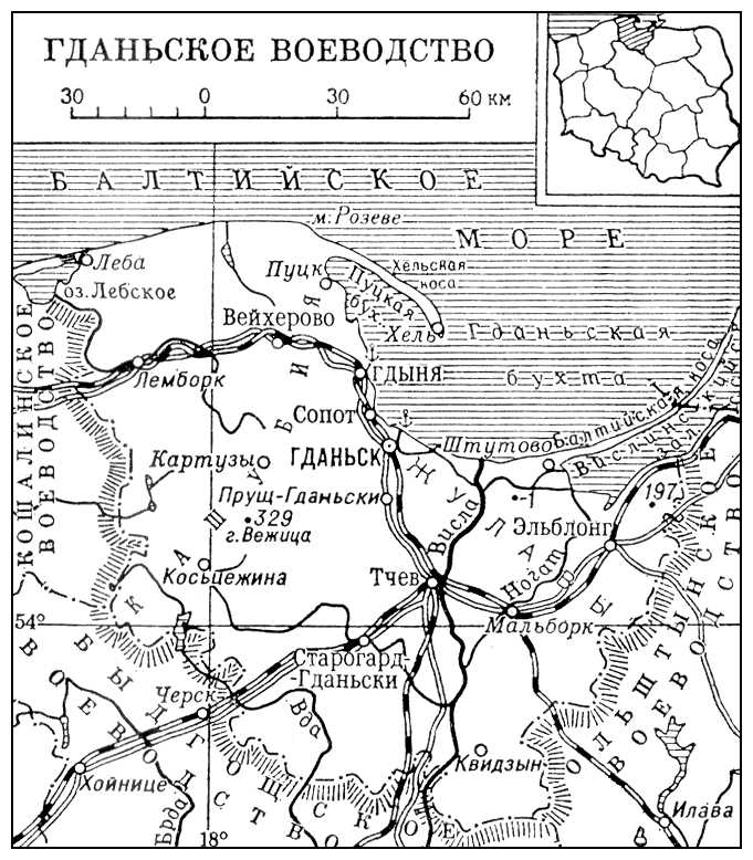 Гды'ня (Gdynia), город и порт в Польше, в Гданьском воеводстве, на берегу Гданьской бухты Балтийского м. Вместе с гг. Гданьск и Сопот образует единую городскую агломерацию, т. н. Труймясто (Трёхградье). Население 182 тыс. человек (1969; 1,3 тыс. чел. в 1921). Развитие города связано с созданием в нём в 1924—36 крупного порта международного значения (с торговой, военной и рыбной гаванями). Грузооборот 9 млн. т (1969); перегрузка генеральных грузов силезского угля, импортных руд, зерна, нефтетоплива и др. Среди отраслей промышленности наиболее развиты машиностроение, главным образом судостроение, и пищевая промышленность (рыбная, жировая, мясная и др.). Высшие морское и военно-морское учебные заведения, научно-исследовательский институт морского рыболовства.