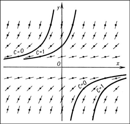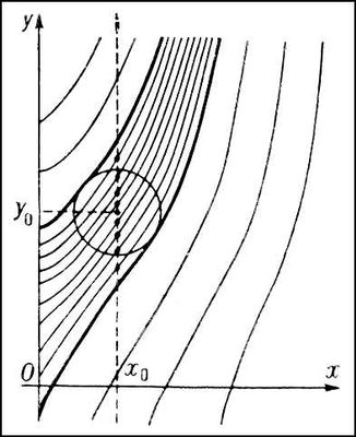 где f и g — произвольные функции. Т. о., Д. у. (16) лишь в той мере ограничивает произвол в выборе функции двух переменных u (х, у), что её удаётся выразить через две функции f (z) и g (v) от одного переменного, которые остаются [если в дополнение к уравнению (16) не дано каких-либо «начальных» или «краевых» условий] произвольными.