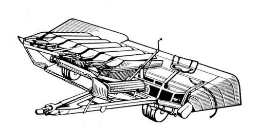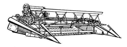 * Вместо мотовила над режущим аппаратом установлен вращающийся против направления движения цилиндр с убирающимися в него пальцами, которые захватывают полёглые стебли, поднимают их с земли и сбрасывают на поперечный транспортёр.