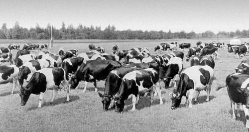 Коровы на пастбище. Совхоз «Красная звезда» Несвижского района Минской обл. БССР.