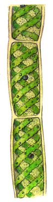 Зелёные во'доросли (Chlorophyta), отдел (тип) низших растений, характеризующихся зелёной окраской в связи с преобладанием в их клетках хлорофилла. З. в. содержат те же пигменты, что и высшие растения (хлорофиллы а и в, каротин и ксантофилл), и почти в таком же соотношении. Есть одноклеточные, колониальные и многоклеточные З. в.; последние большей частью нитевидной, реже пластинчатой формы. Некоторые З. в. имеют т. н. неклеточное строение, т. е. тело их, несмотря на крупные размеры и иногда сложное внешнее расчленение, не разделено на клетки. Подвижные одноклеточные и колониальные формы, а также зооспоры и гаметы З. в. имеют 2—4, редко больше, жгутика и светочувствительный глазок. Клетки З. в. одноядерные или реже многоядерные, в большинстве случаев одеты оболочкой преимущественно из целлюлозы. Хроматофоры часто с пиреноидами. Размножение бесполое (зооспорами и неподвижными спорами), половое (изогамия, гетерогамия, оогамия, конъюгация) и вегетативное (одноклеточные — делением тела надвое, многоклеточные нитевидные — участками таллома). Функцию органов полового и бесполого размножения выполняют вегетативные клетки. Спорангии как особые образования известны лишь у некоторых дазикладовых, гаметангии — у части дазикладовых и сифоновых. У одних З. в. одна и та же особь может давать, в зависимости от внешних условий, органы либо бесполого, либо полового размножения, у других существуют спорофиты и гаметофиты, которые могут быть одинакового или разного строения. Мейоз у З. в. происходит в зиготе.