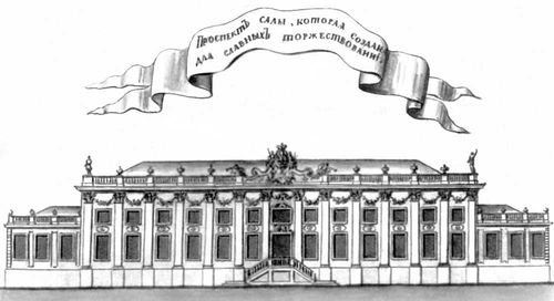 М. Г. Земцов. «Зал для славных торжествований» в Петербурге (чертёж, Эрмитаж, Ленинград). 1725.