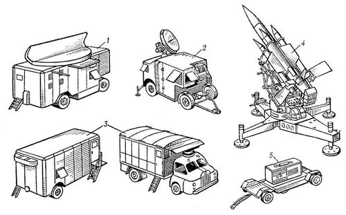 Зени'тный раке'тный ко'мплекс (ЗРК), ракетное оружие, представляющее собой совокупность зенитной управляемой ракеты (ЗУР), пусковой установки, радиолокационной станции обнаружения и наведения, системы управления, контрольно-измерительной аппаратуры и транспортных средств (см. рис.). Предназначен для уничтожения воздушных средств нападения противника. ЗРК появились после 2-й мировой войны 1939—45 в Вооруженных Силах СССР и некоторых иностранных государств. Состоят на вооружении зенитных ракетных войск и являются основным средством ПВО. ЗРК обеспечивают обнаружение, опознавание и выбор для поражения воздушной цели, а также пуск и наведение ЗУР на цель при любых условиях погоды, времени года и суток. ЗРК делятся по месту старта — на наземные, корабельные и для подводных лодок; по подвижности — на стационарные, полустационарные и подвижные; по тактико-техническим данным — на комплексы дальнего действия, средней, малой дальности и ближнего действия. По иностранным данным, ЗУР имеют дальность полёта от 4 до 700 км, наибольшую высоту от 1,5 до 150 км и более, стартовую массу от 8 кг до 10 т, максимальную скорость полёта от 270 до 2300 м/сек.