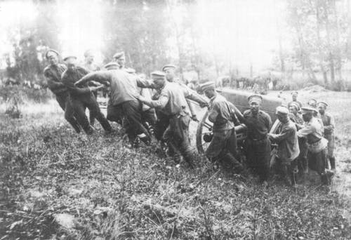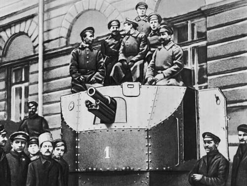 Солдаты автобронедивизиона во дворе Смольного. Петроград. Октябрь 1917.