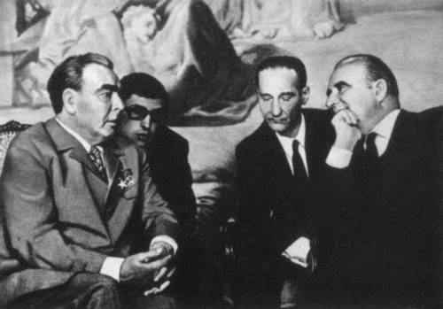 Пребывание во Франции Генерального секретаря ЦК КПСС, члена Президиума Верховного Совета СССР Л. И. Брежнева. Июнь 1973. Л. И. Брежнев и президент Французской Республики Ж. Помпиду во время беседы.