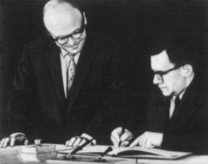 Подписание Договора о запрещении испытаний ядерного оружия в атмосфере, в космосе и под водой государственным секретарём США Д. Раском. Москва. Кремль. 5 августа 1963.
