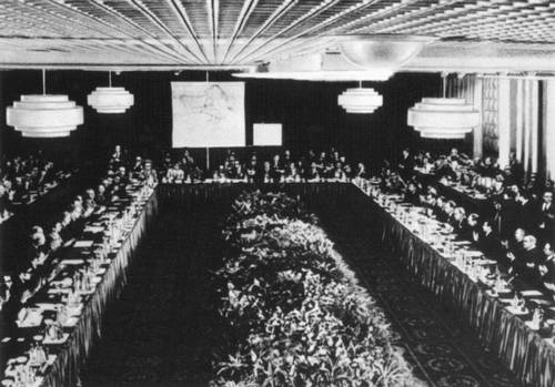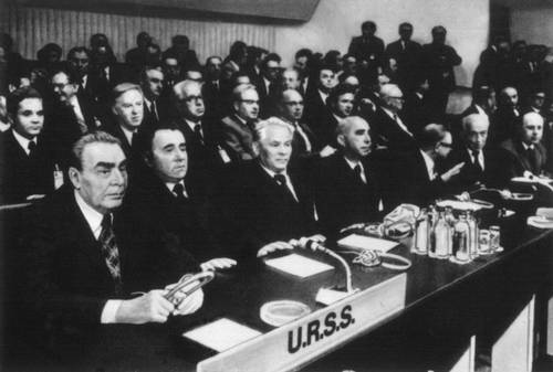 Совещание по безопасности и сотрудничеству в Европе. Хельсинки. 30 июля 1975. Делегация Советского Союза в зале заседаний.