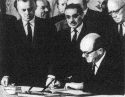 Подписание Договора о запрещении испытаний ядерного оружия в атмосфере, в космосе и под водой министром иностранных дел СССР А. А. Громыко. Москва. Кремль. 5 августа 1963.