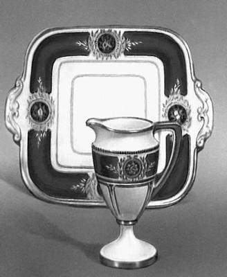 Севрский фарфор. Ф. Г. Холмс. Блюдо и кувшинчик. 1913.