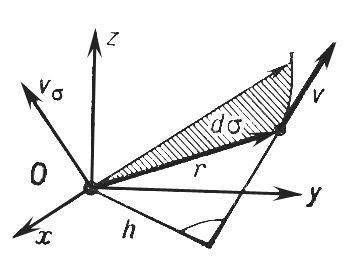 Се'кторная ско'рость, величина, характеризующая скорость возрастания площади, которую описывает радиус-вектор r движущейся точки, проведённый в эту точку из некоторого фиксированного центра О. Если за элементарный промежуток времени dt площадь получает приращение ds (см. рис.), то численно С. с. vc = ds/dt. Со скоростью точки v С. с. связана соотношением vs = vh/2, где h — длина перпендикуляра, опущенного из центра О на направление вектора v, т. е. С. с. равна половине момента вектора скорости относительно центра О. С. с. можно ещё представить в виде вектора vs = [r v]/2. При движении точки по плоской кривой vs = 1/2 r 2 dj/dt, где r и j — полярные координаты точки. Производная от С. с. по времени называется секторным ускорением точки ws; при этом ws = [r w]/2, где w — ускорение точки.