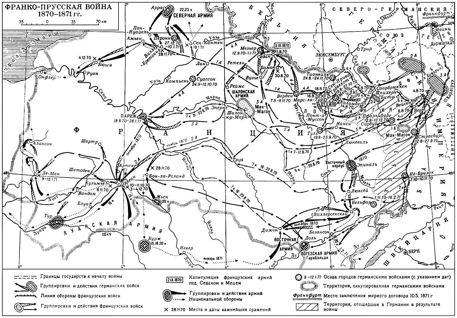 Лит.: Маркс К., Первое воззвание Генерального Совета Международного Товарищества Рабочих о Франко-прусской войне, Маркс К. и Энгельс Ф., Соч., 2 изд., т. 17; его же, Второе воззвание Генерального Совета Международного Товарищества Рабочих о Франко-прусской войне, там же; его же, Гражданская война во Франции, там же; Энгельс Ф., Заметки о войне, там же; Михневич Н. П., Война между Германией и Францией 1870–1871 гг., ч. 1, СПБ. 1897; Ротштейн Ф. А., Две прусские волны, М. – Л., 1945; Желубовская Э. А., Крушение Второй империи и возникновение Третьей республики во Франции, М., 1956; История Парижской Коммуны 1871, М., 1971; Шнеерсон Л. М., Франко-прусская война и Россия. Из истории русско-прусских и русско-французских отношений в 1867 – 1871 гг., Минск. 1976; Жорес Ж., Франко-прусская война, в кн.: Социалистическая история, т, 11, СПБ, 1908; Мольтке Г.-К.-Б., История германо-французской войны 1870–1871 гг., пер. с нем., М., 1937; Дельбрюк Г., История военного искусства в рамках политической истории, т. 6, М., 1939 (совместно с Э. Даниэльсом); Der deutsch-franz"osische Krieg, 1870–1871, Bd 1–5, В., 1872–81; La guerre de 1870–1871, v. 1–24, P., 1901–13; Rousset L., Histoire g'en'erale de la Guerre franco-allemande (1870–1871), v. 1–2, P., 1912; Howard М., The Franco-Prussian war, N. Y., 1962; Helmert Н. und Usezeck Н. J., Preussisch-deutsche Kriege von 1864 bis 1871, 2 Aufl., В., 1970.