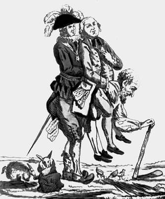«Будем надеяться, что скоро этой игре придет конец» (крестьянство везёт на себе дворянство и духовенство). Сатирическая листовка 18 в.