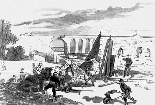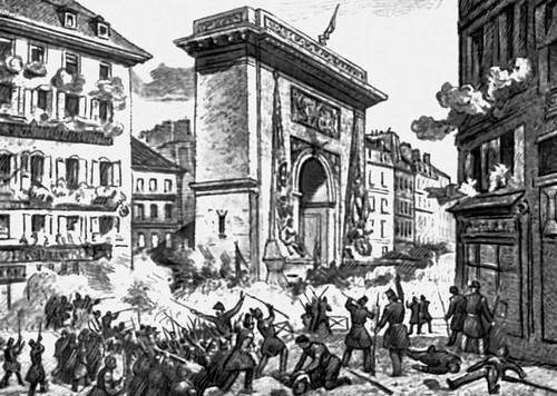Сооружение баррикады 19 марта 1871. Рис. А. Робида (1848—1926).