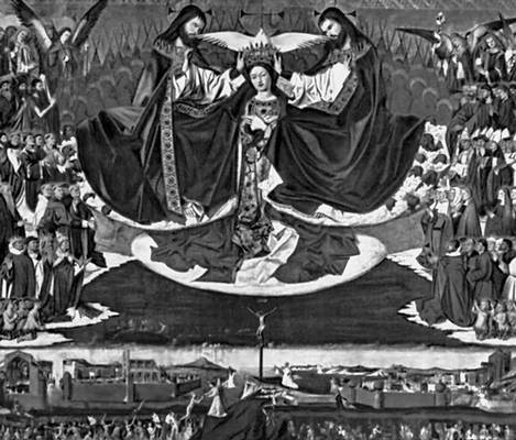 Франция. Изобразительное искусство 1 в. до н. э.—17 в. Э. Шаронтон. «Коронование богоматери». 1453—54. Госпиталь. Вильнёв-лез-Авиньон.