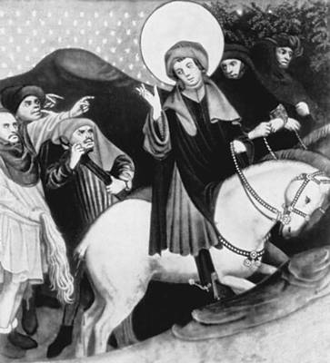 Мастер Франке. «Осмеяние св. Фомы Кентерберийского» (фрагмент алтаря св. Фомы, начат в 1424, Кунстхалле, Гамбург).